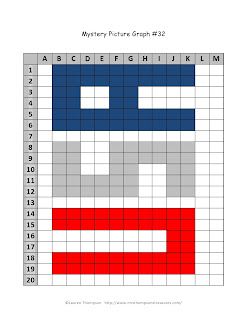 Throughout the summer I am going to try to post a new freebie every week! Some weeks I'll post great freebies from other people, but this week I've got one of my own. I make alot of things for my 5 year old at home, but I also have some stuff for older kids too. The most popular items that I've had on TpT have been the Mystery Picture Graphs which are best for grades 2-5. So the freebie for this week is a brand new mystery picture! This would go great with a lesson on Memorial Day, the 4th of July, or any other patriotic theme!